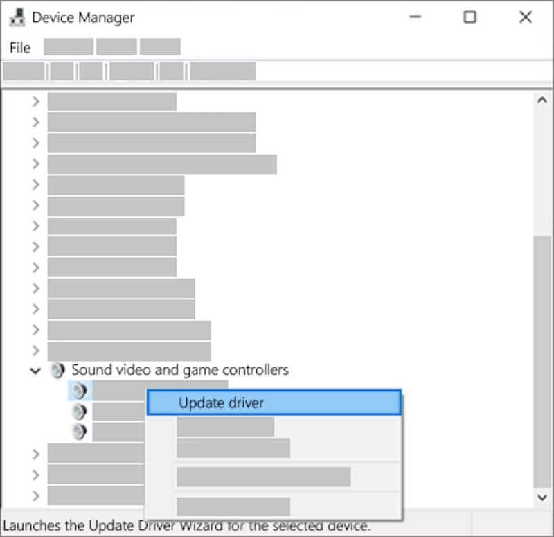 - Accédez au Gestionnaire de périphériques et cliquez sur la catégorie Son. Choisissez le périphérique audio actif et faites un clic droit dessus. Sélectionnez l’option Mettre à jour le pilote.