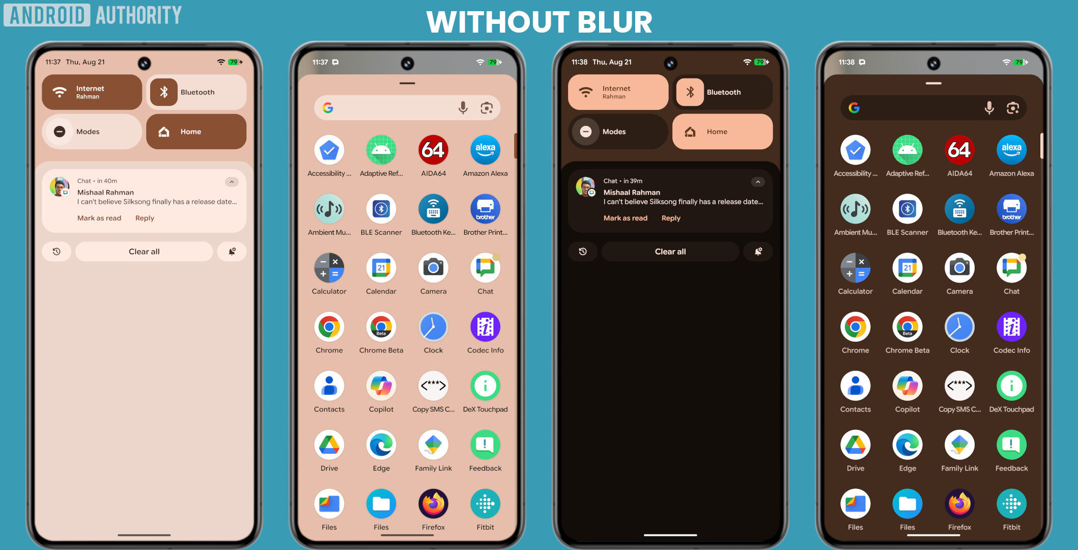 L’équipe d’Android Authority est un grand fan de la nouvelle refonte d’Android Material 3 Expressive, et il semble que nous ne soyons pas seuls. Selon notre récent sondage, près de 63 % d’entre vous l’aiment aussi, tandis que la plupart des 37 % restants le trouvent acceptable. Pour la petite fraction de nos lecteurs qui n’aiment pas le nouveau design, le principal reproche est la lisibilité. Material 3 Expressive utilise abondamment les effets de flou d'arrière-plan, qui, bien que visuellement attrayants, se font au détriment de la visibilité du texte.