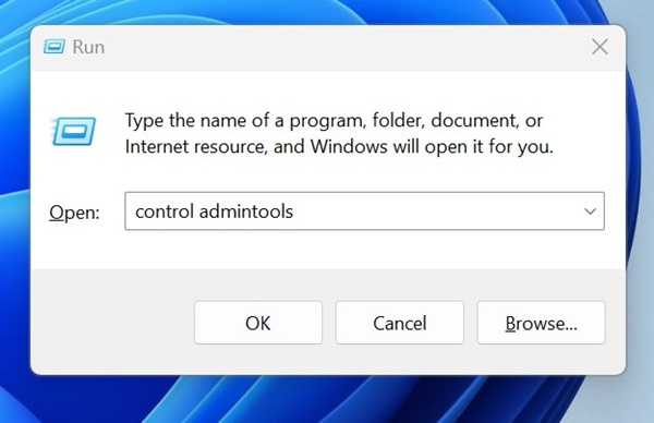 - Tapezcontrôler les outils d'administrationdans la boîte de dialogue EXÉCUTER et appuyez sur Entrée.