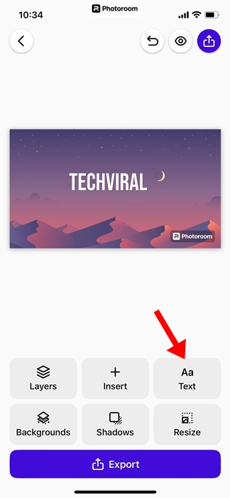 3. Appuyez sur leTexteicône dans le coin supérieur droit.