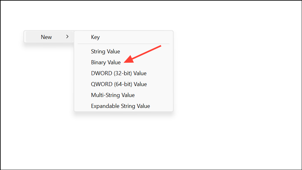 Étape 3 :Cliquez avec le bouton droit sur le volet de droite et choisissezNew > Binary Value. Nommez la nouvelle valeurScancode Map.