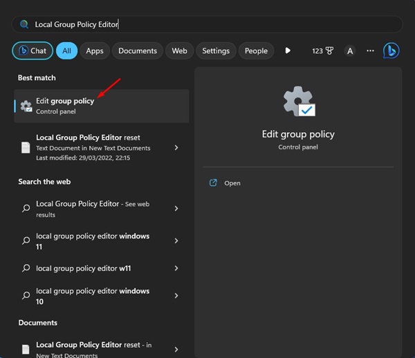 1. Cliquez sur Recherche Windows 11 et saisissezÉditeur de stratégie de groupe local.