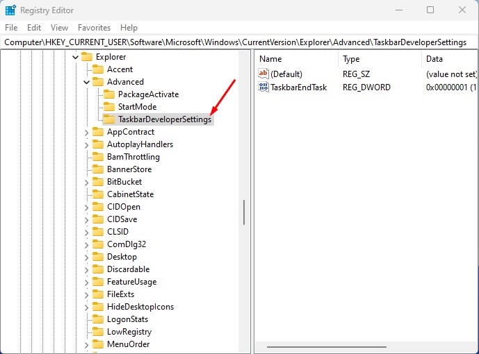 HKCUSoftwareMicrosoftWindowsCurrentVersionExplorerAdvancedTaskbarDeveloperSetting