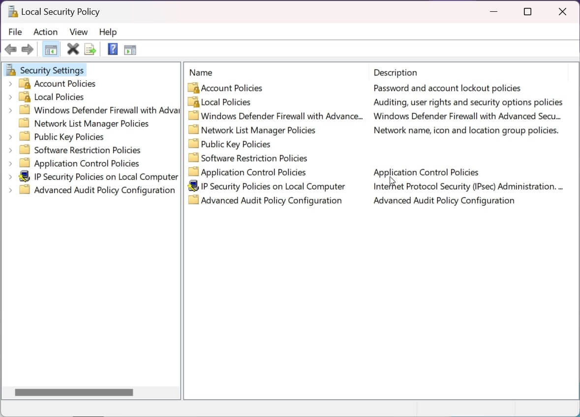 - Tapez secpol.msc et appuyez sur Entrée.