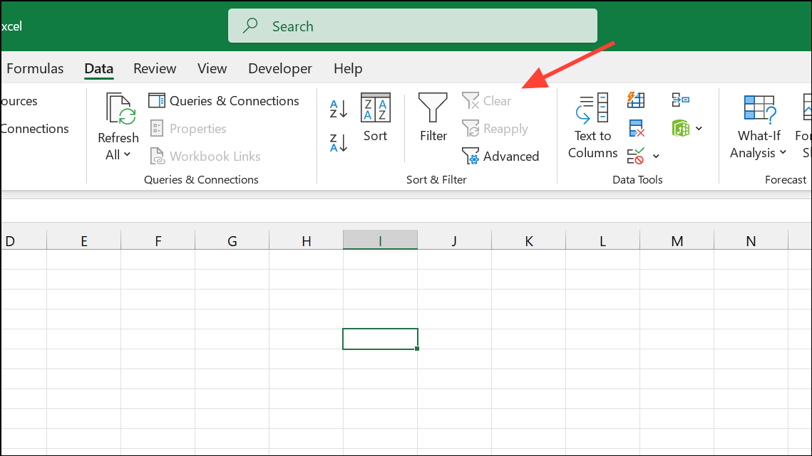 Étape 2 :Cliquez sur leClairbouton dans leTrier et filtrersection. Cette action supprime tous les filtres appliqués et affiche l'ensemble de données complet.