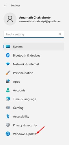 2. Passez àMise à jour Windows.