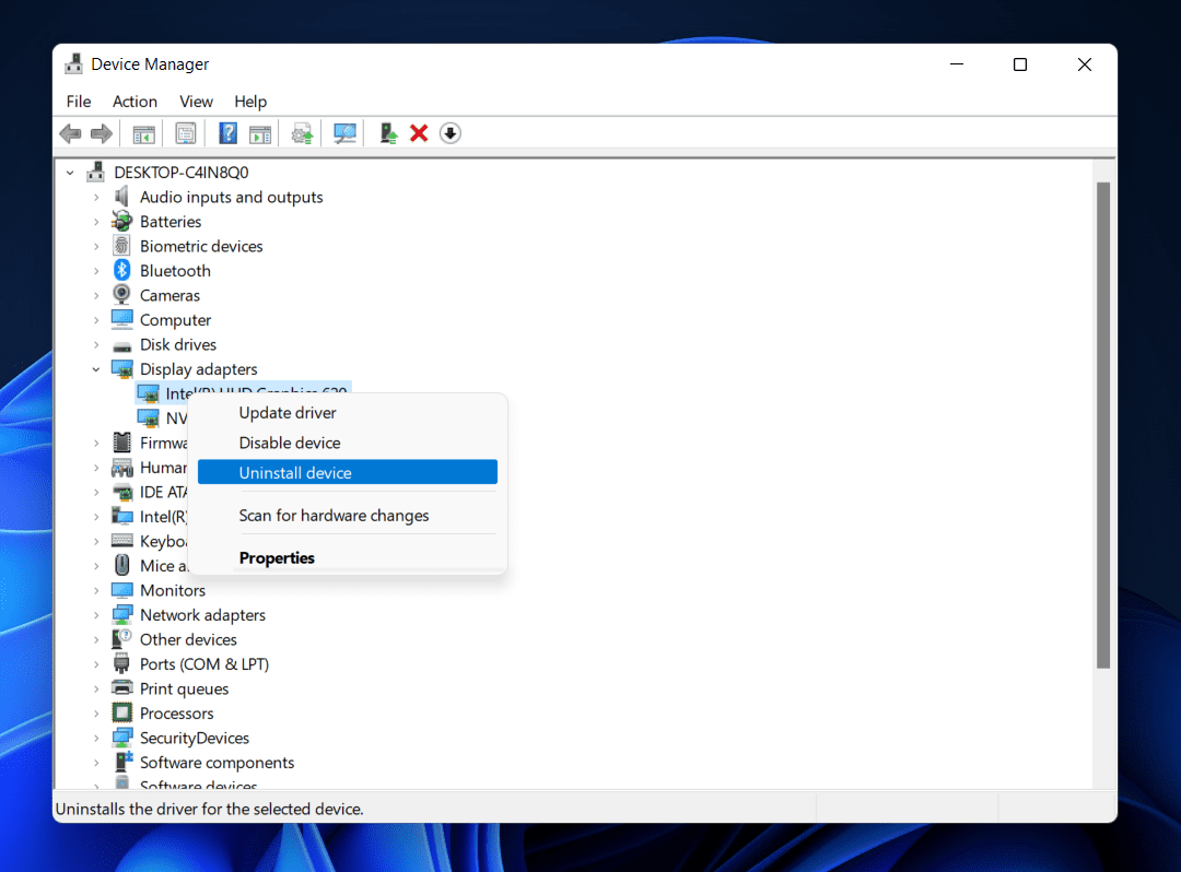 - Vous devrez faire de même pour toutes les cartes graphiques que vous avez sur votre PC. Cela désinstallera le pilote graphique de votre PC.