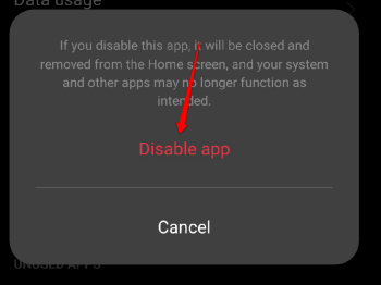 3. Appuyez sur leDésactiveroption. Cela désactivera temporairement l'application Appareil photo.