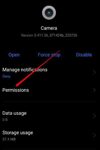1. Ouvrez leParamètres > Applications > Option de gestion des applications > Appareil photo.