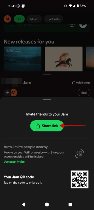 Appuyez sur lePartager le lienpour envoyer le lien de votre Jam via des applications de messagerie ou de messagerie.