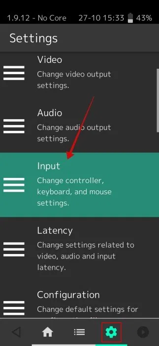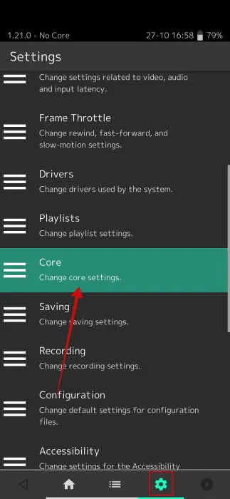 Si vous souhaitez supprimer un noyau, vous devrez accéder au menu Paramètres en appuyant sur l'icône d'engrenage en bas.