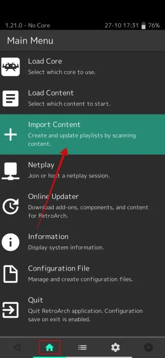 Alternativement, si vous ne souhaitez pas charger vos jeux un par un, vous pouvez utiliser cette solution de contournement : accédez au menu principal et sélectionnezImporter du contenu(dans la version Google Play, c'est sous leListes de lecture– qui ressemble à un menu de hamburgers et se trouve en bas).
