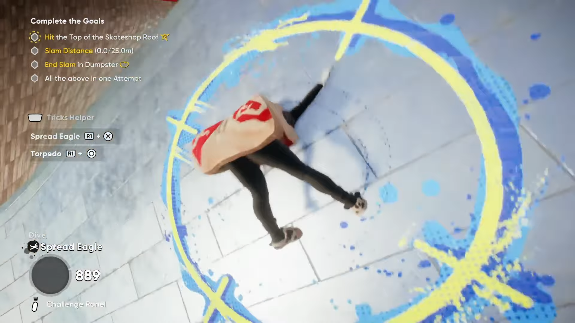 La distance de slam est spécifiquement la longueur qu'un patineur parcourt sur le sol après avoir effectué le premier impact important, comme après avoir sauté ou chuté d'une hauteur et entré dans une pose de « slam ». Cette distance est mesurée que ce soit dans la pose de l'aigle écarté ou dans la pose de la torpille et est essentielle dans divers défis tout au long du jeu, en particulier dans le fameux GOOOOOOAL ! tâche.