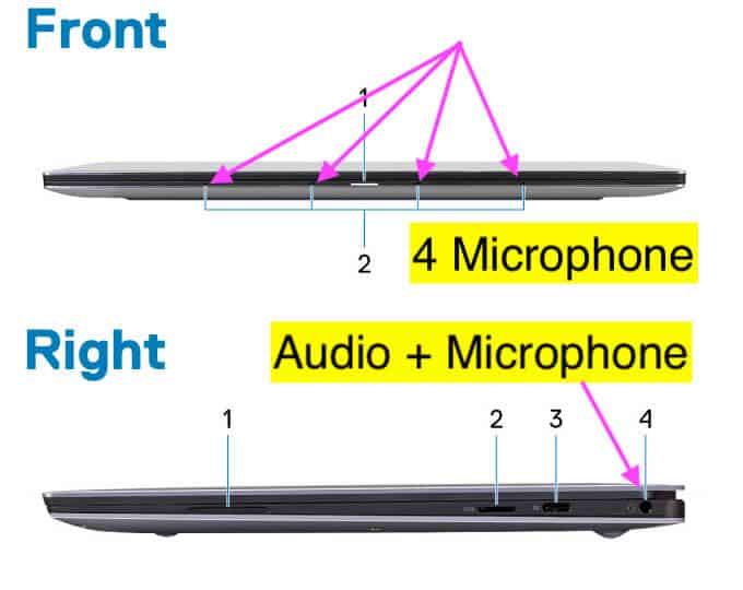 Si vous avez un DellXPS13ordinateur portable, vous obtiendrezquatre microssur la face avant de l'ordinateur portable.