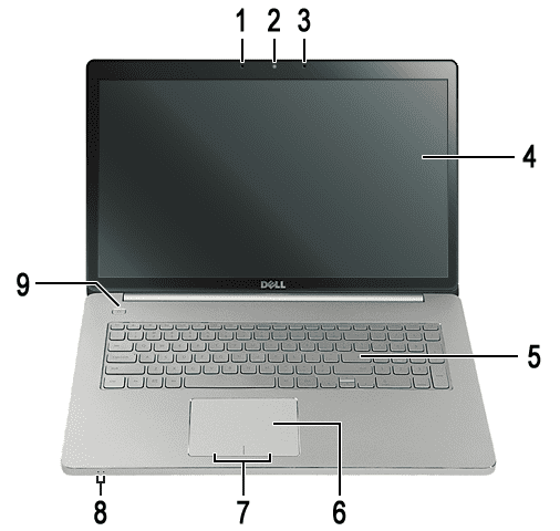 En revanche, si l'ordinateur portable Dell provient duSérie XPS, le microphone sera situé sur leface avant de l'ordinateur portable. Disons que vous possédez unXPS15ordinateur portable; il y auradeux microssur la face avant de l'ordinateur portable. Sur la photo,positions 1 et 3représente la position du microphone.