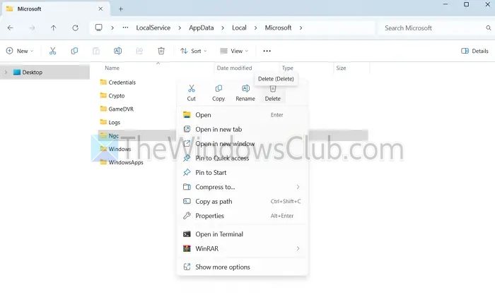 Faites un clic droit sur le dossier Ngc et supprimez-le. Si vous obtenez une erreur d'autorisation lors de la suppression du dossier, vous devrez devenir propriétaire du dossier sous Windows pour le supprimer.