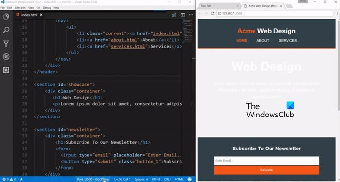 Commençons par une extension pour ouvrir votre site Web localement. Live Server est une extension puissante qui vous donne le privilège de créer un environnement de serveur de développement local pour accéder au rechargement en direct des pages statiques et dynamiques. C'est très utile pour quelqu'un qui souhaite vérifier ce qui se passe sur le site Web en temps réel. Ainsi, au fur et à mesure que vous écrivez votre code, vous verrez l’effet sur le serveur. Par conséquent, vous n’avez pas besoin d’actualiser votre page à chaque fois pour voir les performances de votre code. Si vous pensez que c'est utile, allez surmarché.visualstudio.compour l'installer. Vous pouvez également suivre les étapes ci-dessus pour installer l’extension.