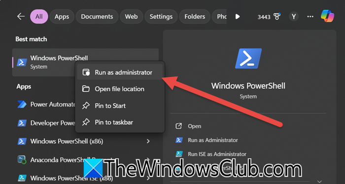 Tout d’abord, nous devons vérifier si le problème auquel vous êtes confronté est effectivement un problème. Si vous lancezPowerShell en tant qu'administrateuren le recherchant dans le menu Démarrer, faites un clic droit sur PowerShell, puis cliquez surExécutez en tant qu'administrateur.Ensuite, essayez d'exécuter le script et voyez si cela aide.