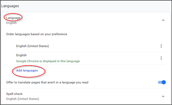 Après cela, cliquez sur le 'Languebouton ' et choisissez 'Ajouter des langues' si la langue souhaitée n'est pas répertoriée.