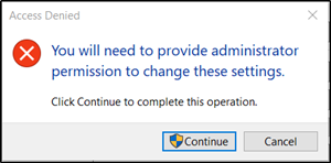 Ici, si vous êtes invité à utiliser l'autorisation de l'administrateur pour effectuer les modifications, ignorez le message et cliquez sur 'Continuer' pour terminer l'opération.