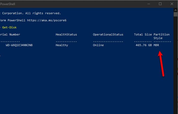 Vérifiez le style de partition dans le résultat pour connaître votre type de partition.