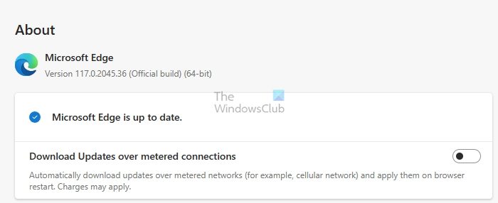 Les caches et les cookies corrompus dans Edge pourraient expliquer pourquoi Copilot ne fonctionne pas dans Bing. Parfois, un bug peut provoquer des problèmes dans Edge. Vous devriez vérifier les mises à jour dans Edge. Si une mise à jour est disponible, installez-la et redémarrez le navigateur Edge.