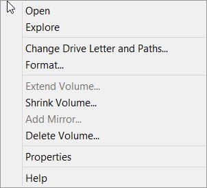 Sélectionnez un disque pour en créer un nouveau. Faites un clic droit dessus. Vous verrez diverses options telles que :