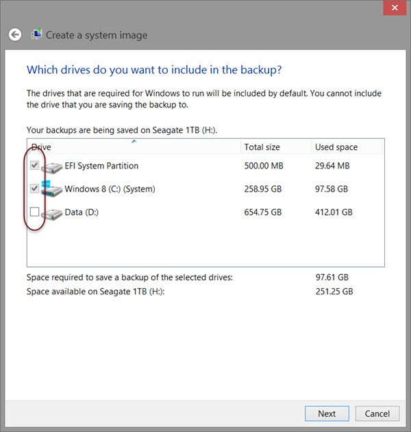 Sélectionnez maintenant les lecteurs que vous souhaitez inclure dans la sauvegarde et cliquez sur Suivant.