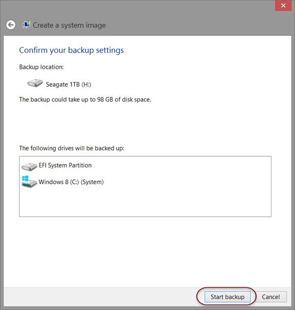 Passez-les en revue et cliquez surDémarrer la sauvegarde. Le fichier image, après un certain temps, sera enregistré sur le lecteur que vous avez sélectionné précédemment.