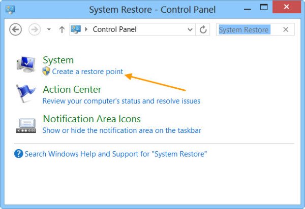 Comme mentionné, Windows crée automatiquement des points de restauration. Pour créer manuellement un point de restauration système, ouvrez le Panneau de configuration et tapezRestauration du systèmedans le champ de recherche.