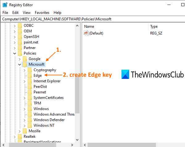 Dans la fenêtre de l'Éditeur du Registre, accédez auMicrosoftclé. Son chemin est :