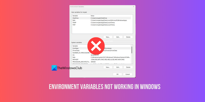 SiLes variables d'environnement ne fonctionnent pas dans Windows 11, ce guide propose quelques solutions pour résoudre le problème. Windows 11 est une bonne mise à niveau du système d'exploitation de Microsoft. Il possède une interface utilisateur claire, des fonctionnalités intéressantes et des options conviviales. Comme tout autre système d’exploitation, nous installons et exécutons les programmes dont nous avons besoin. Pour les installer et les exécuter correctement, de nombreux processus s'exécutent en arrière-plan pour les aider à fonctionner de manière transparente. Les variables d'environnement sont l'une de ces variables les plus importantes sur Windows 11.