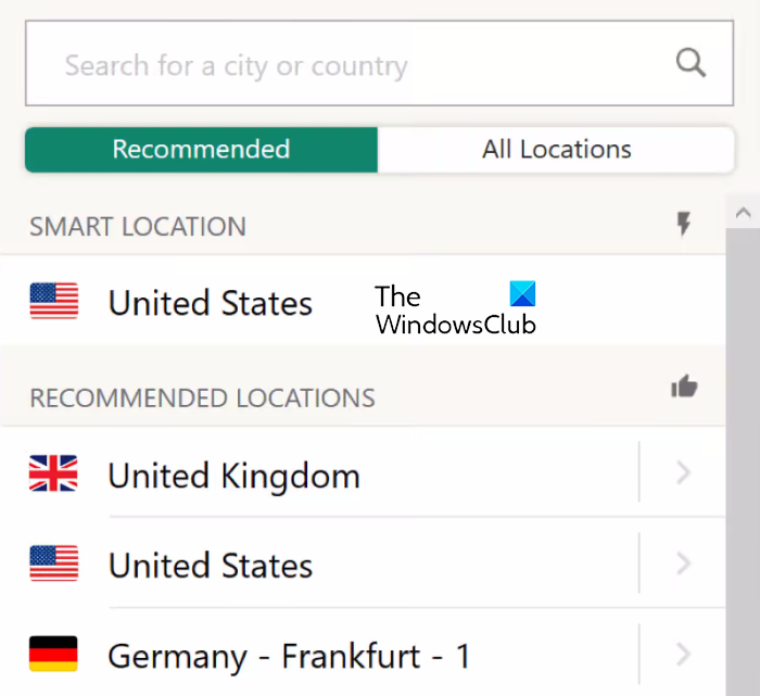 Vous pouvez également essayer de passer à un autre emplacement de serveur VPN si vous rencontrez des problèmes avec l'emplacement actuel. Il peut s'agir d'un problème temporaire lié à l'emplacement du serveur actuellement choisi qui est à l'origine du problème de connexion dans ExpressVPN. Par conséquent, si le scénario s’applique, le problème peut être résolu en vous connectant à un autre emplacement de serveur. Voici comment procéder :