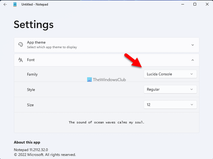 Lucida Console est la police par défaut du Bloc-notes et le format est Regular, avec une taille fixée à 10. Cependant, si vous souhaitez afficher des textes dans d'autres polices, vous pouvez les modifier. Pour cela, vous pouvez suivre les étapes mentionnées ci-dessus. Pour votre information, ce guide fonctionne uniquement sur Windows 11.