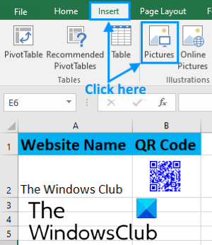 3] Maintenant, allez dans «Insérer > Image» et sélectionnez le code pour l'insérer dans Excel.