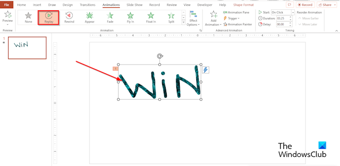 - Cliquez sur l'effet d'animation Replay dans la galerie Animation.