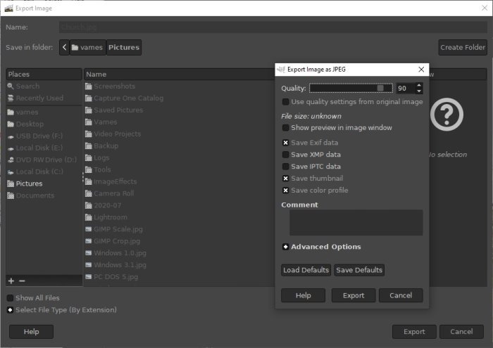 4] Changer la taille du fichier d'une photo JPEG dans GIMP