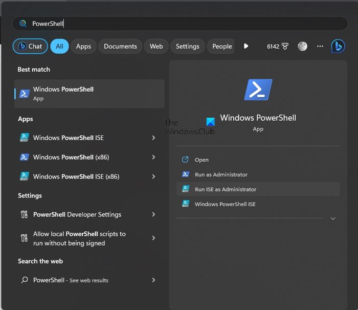 Ouvrez l'outil PowerShell en tant qu'administrateur, puis exécutez la commande suivante :