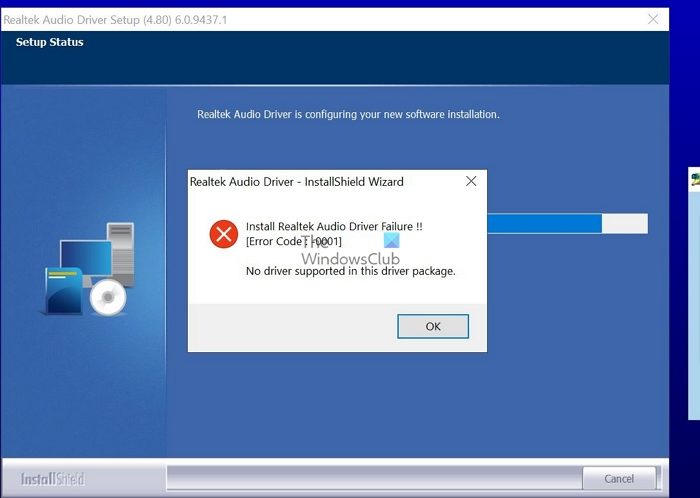 Les pilotes audio de Realtek sont parmi les causes les plus connues des problèmes Windows. Si vous recevezCode d'erreur d'échec de l'installation du pilote audio Realtek Aucun pilote pris en charge dans ce package de pilotesmessage suivi de codes d'erreur comme0x00005b3,0002,0x000000FF, etc., vous ne pourrez pas installer les pilotes requis pour votre carte son Realtek.