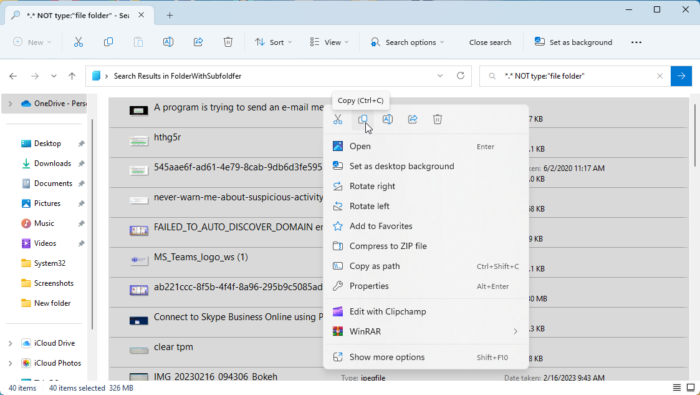 - Maintenant, appuyez surCTRL + Apour sélectionner tous les fichiers et couper ou copier ces fichiers selon vos préférences.