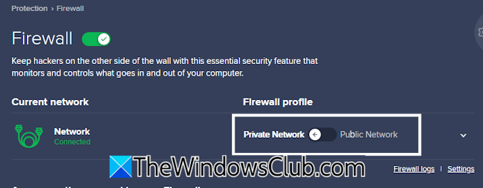 Si vous utilisez un pare-feu tiers, vérifiez ses paramètres. Vous avez peut-être défini un profil réseau différent dans les paramètres de votre pare-feu, ce qui fait que votre profil réseau continue de changer automatiquement pour celui défini dans votre pare-feu.