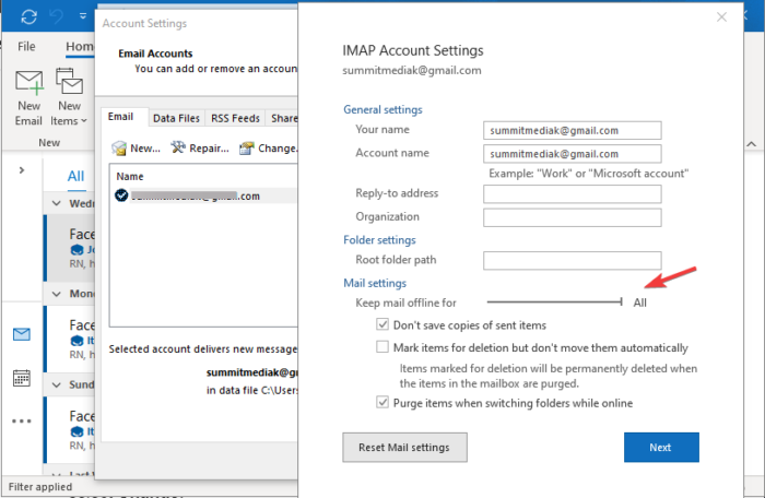 - Un nouveauChanger de compteL'assistant apparaîtra. Allez auParamètres hors ligneet faites glisser le pointeur jusqu'à la longueur maximale jusqu'à ce qu'il indiqueTous.
