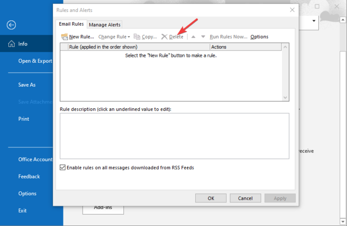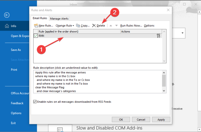 Si les règles Outlook ne sont pas activées, elles ne fonctionneront ni sur l'application Outlook ni sur Outlook Web. Vérifiez s'ils sont activés en suivant les étapes ci-dessous :