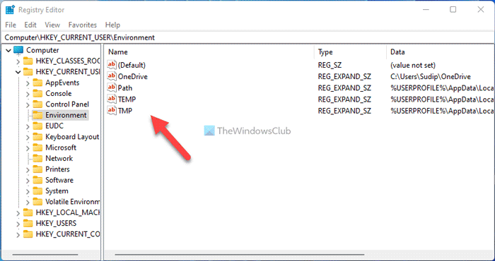 - Accédez à ce chemin :HKEY_CURRENT_USER\Environnement