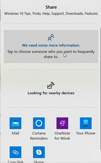 Microsoft Edge vous permet de partager des URL via plusieurs applications telles que Skype, OneNote et autres.