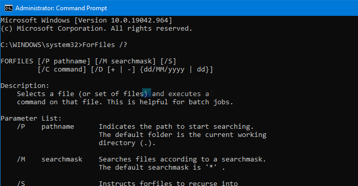 BaleineLa commande vous permet de gérer ou de supprimer des dossiers, en respectant certains critères sous Windows 11/10. Si vous souhaitez utiliser la commande ForFiles sur un dossier réseau partagé ou un lecteur réseau mappé, voici comment procéder à l'aide de l'invite de commande.
