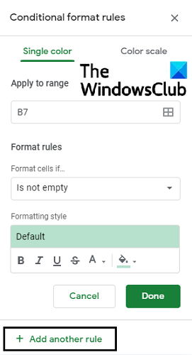- Entrez les entrées, c'est-à-dire les cellules sur lesquelles cette nouvelle règle s'appliquerait et les conditions