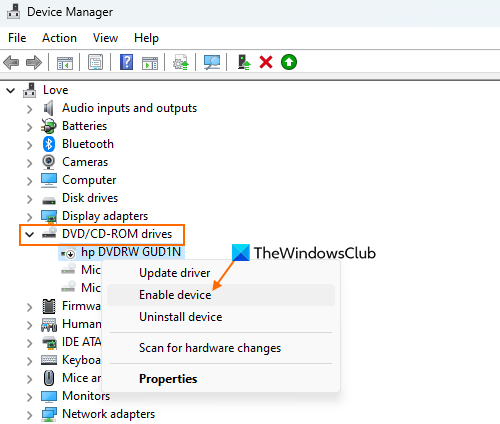 Une des raisons pour lesquelles tu fais face à çaProblème de périphérique ATAPI valide introuvablec'est parce que le lecteur de DVD/CD-ROM est désactivé sur votre système. D'un autre côté, si vous utilisez un lecteur DVD ou un graveur DVD externe et que vous connectez ensuite cet appareil à un port USB ne le reconnaît pas, alors peut-être que le port USB est également désactivé. Cela s'est peut-être produit après la mise à jour que vous avez installée. Donc, tu doissur votre PC Windows 11/10 et voyez si cela aide.