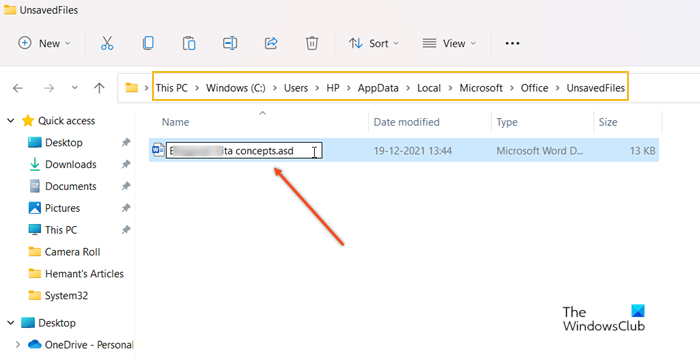 Collez le document ici et modifiez le type de fichier en .asd.