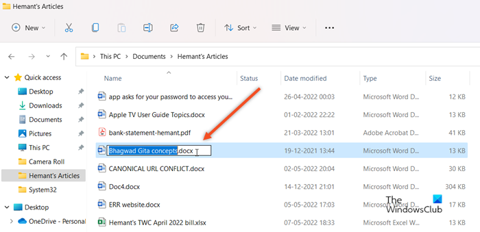 La méthode la plus simple pour résoudre ce problème consiste à modifier manuellement l’extension du fichier. Pour ce faire, cliquez avec le bouton droit sur le fichier et sélectionnezRebaptiseroption.